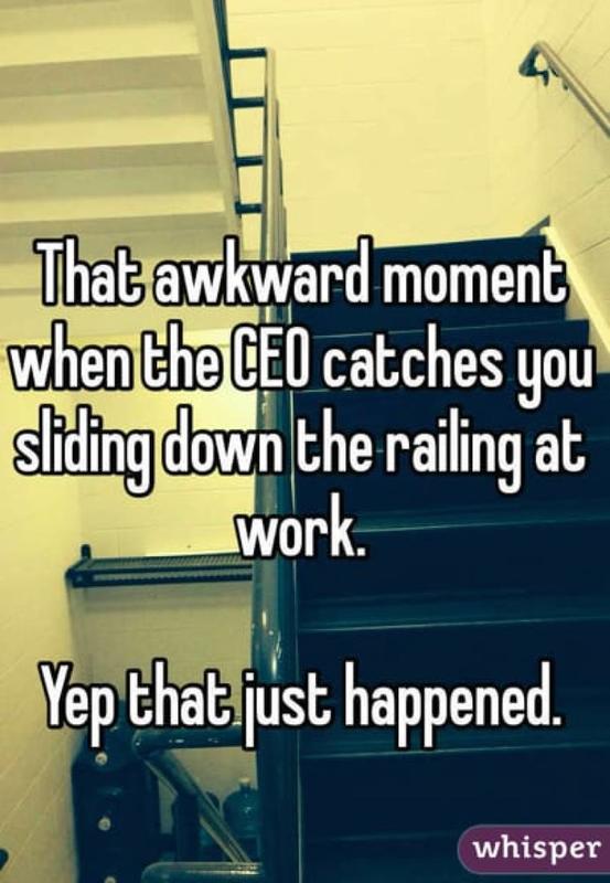 Every employee wants to have fun at work - studies have shown that happy employees are more productive an engaged at work. That's why this guy was sliding down the rails when the company CEO caught them at the wrong moment.