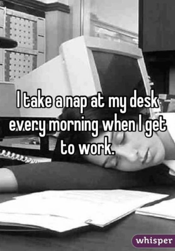 Some employees are so stressed out and tired from working (especially over time), that they sometimes have to take naps while at their desk. That is kind of like how the poster of the above message does - they take a short nap every morning before anyone notices.