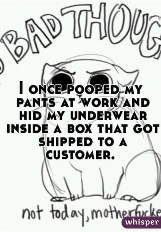 Here is a nasty message someone posted on Reddit. The poster said that at one time they (unintentionally) pooped their pants at work, and in order to hide their dirty underwear, they placed it in a package that got shipped to a company customer.