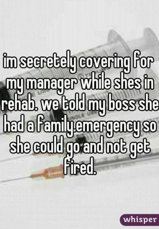Not all of today's stories are going to be about the negative aspects of the modern workplace. Take for example the above message - an employee said that she is secretly covering for her manager, who went to rehab so that her manager doesn't get fired.