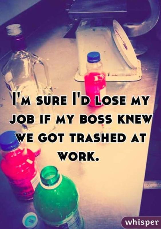 Another bad and unproductive thing some employees do at work is getting "trashed" or otherwise intoxicated while at work. Bosses hate this, and at many companies, going drunk to work even once is enough to get fired and even blacklisted from the industry.