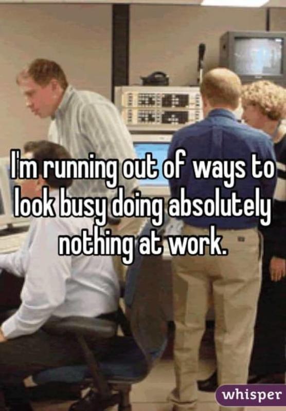 One of the most important arts of being an employee in the 21st century is the art of looking busy without actually doing anything. The person who wrote the above message is getting anxious due to "running out of ways to look busy doing nothing at work."