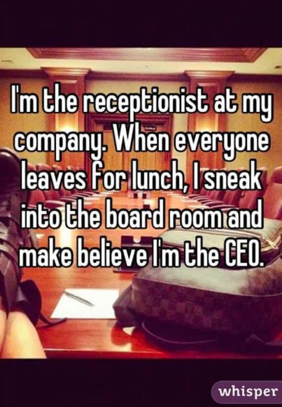 Here is a funny message a receptionist from some company posted. The poster said that once the boardroom and other employees leave for their lunch break, they sneak into the boardroom and play a "make-believe" CEO of the company.