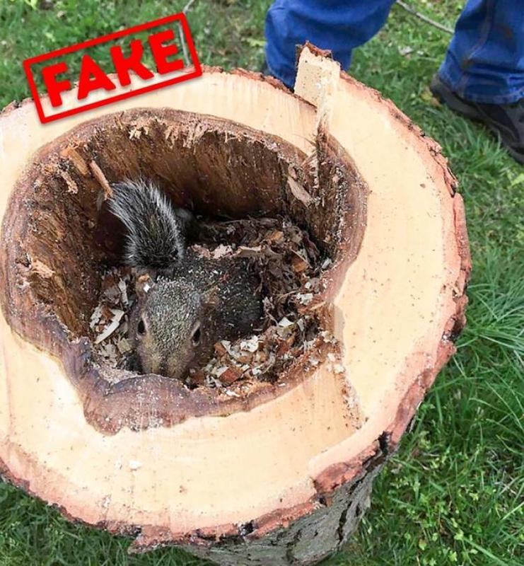 This is one picture that both dazzled and saddened users online. It had supposedly a squirrel that had been reportedly trapped in that tree trunk for days until she was rescued by being rescued out. Now it's no surprise to know that a simple lie took off so easy and had so many believed.
