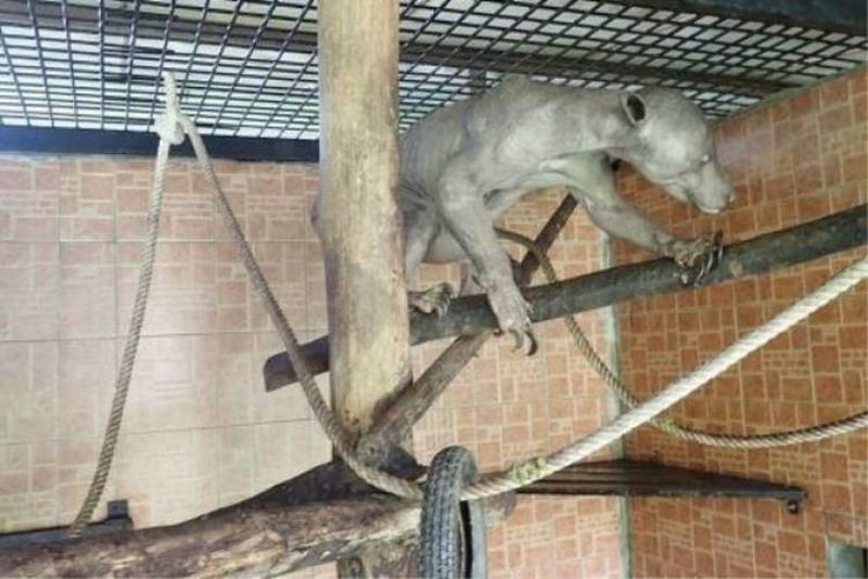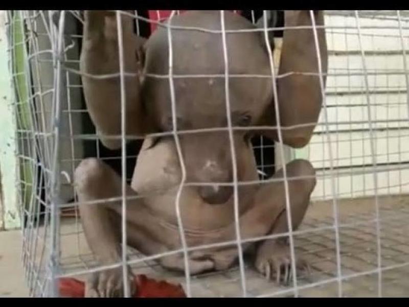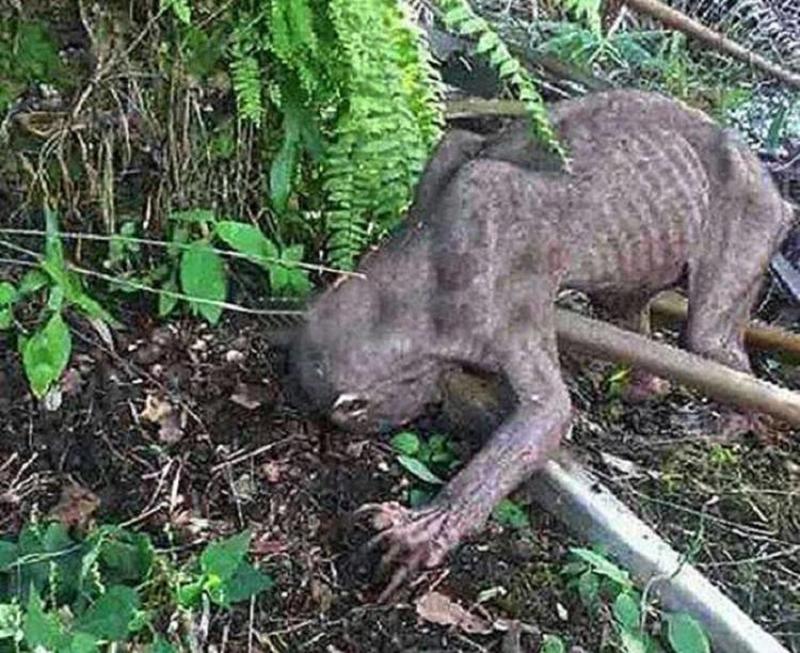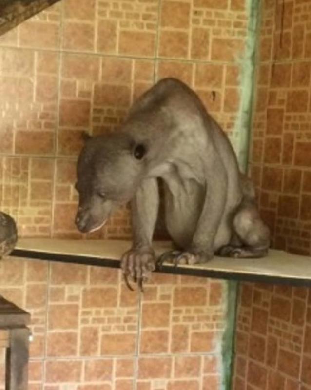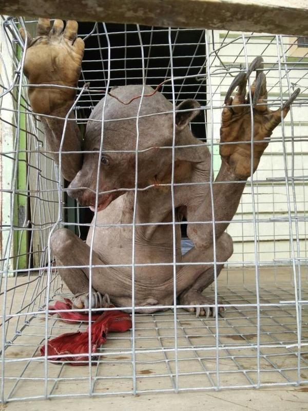 The supposed "alien" creature or monster of the jungle, turned out to be a Sun Bear. A normal individual from the sun bear species weights anywhere from 60 to 150 pounds and has far over its skin. This bear confused the villagers due to the lack of fur.