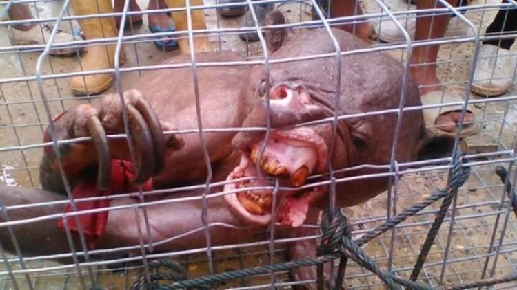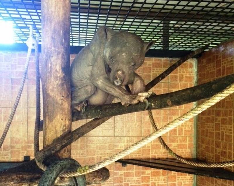 The villages saw the creature at a palm oil plantation. It looked weak and scared - it probably hadn't had a decent meal in days or even weeks. Its emancipated look didn't help its cause - the villagers still trying charging at him.
