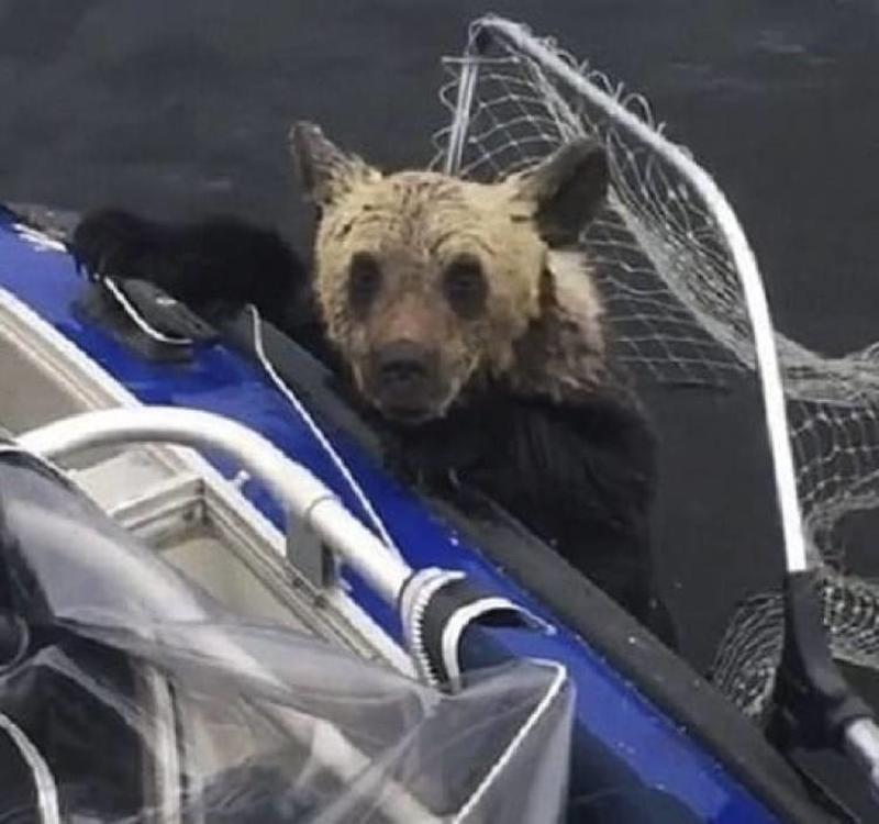 The bear trying to haul itself up the side of the boat was a call to arms for the fishermen. Clearly, the animals wanted their assistance. Although the cub could get a paw on board, it didn't have the strength to haul itself up and out of the lake.