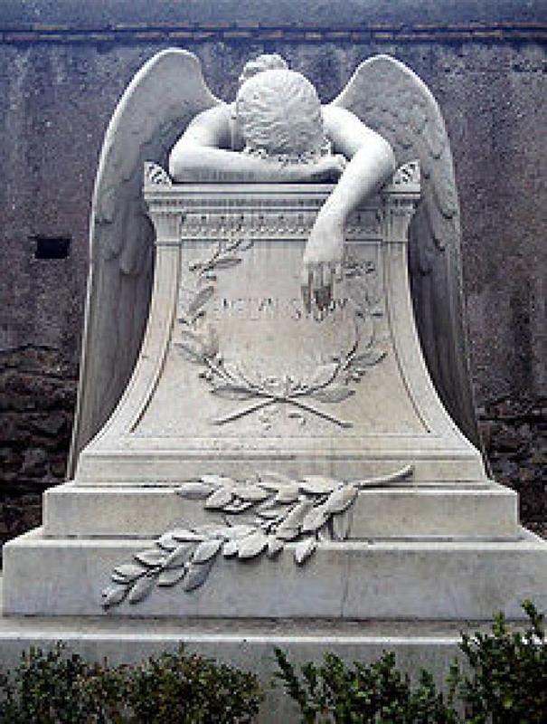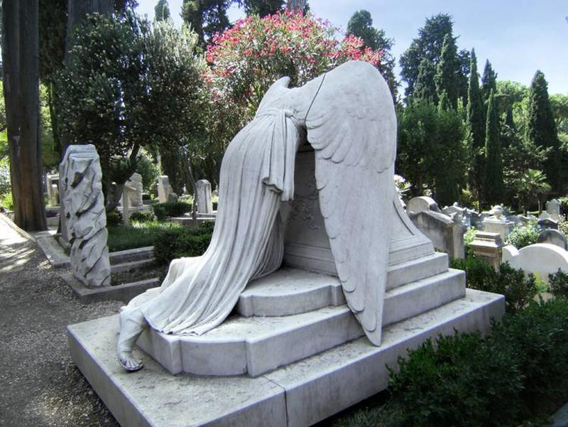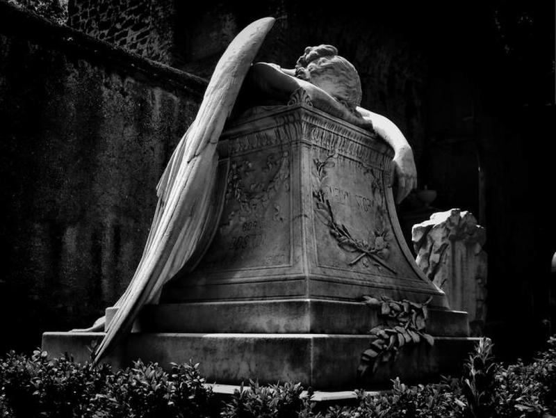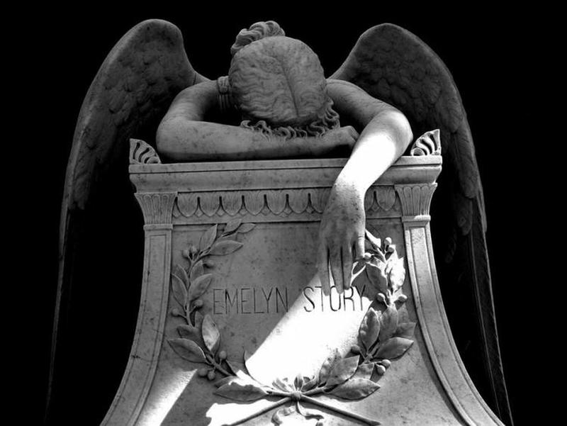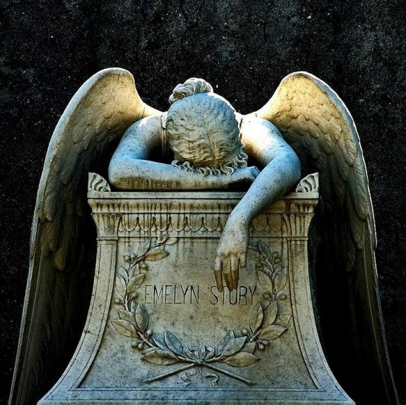 The Angel of Grief is a common staple of most cemeteries worldwide, it was originally designed by William Wetmore Story back in 1894 to depict a loss of a loved one. The angel is slumping over the gravestone showing the highest state of despair. Her wings which are naturally inclined to fly upwards are seen drooping and her posture is caved in on the grave.