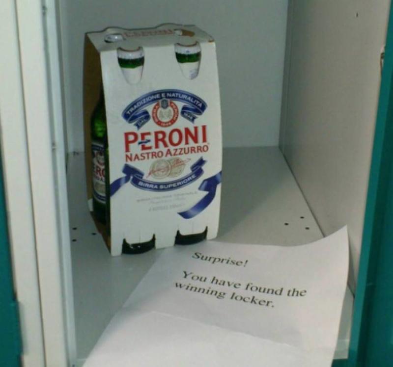 This is one of the funniest photos in today's collection. It seems that someone decided to leave a beer two-pack in a gym locker, alongside a note saying "Surprise! You have found the winning locker." Not sure if he isn't trolling, as gym people usually don't like to mix it up with alcohol.