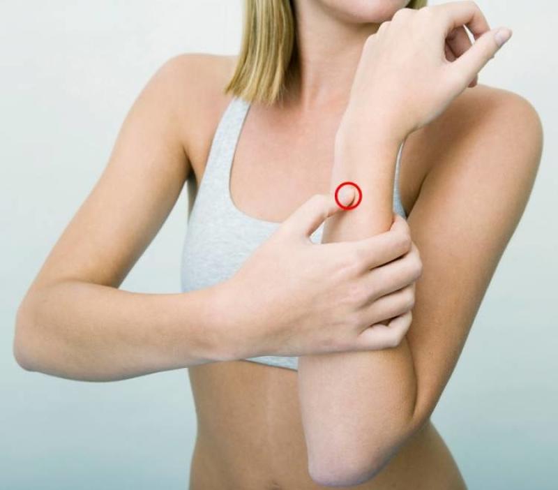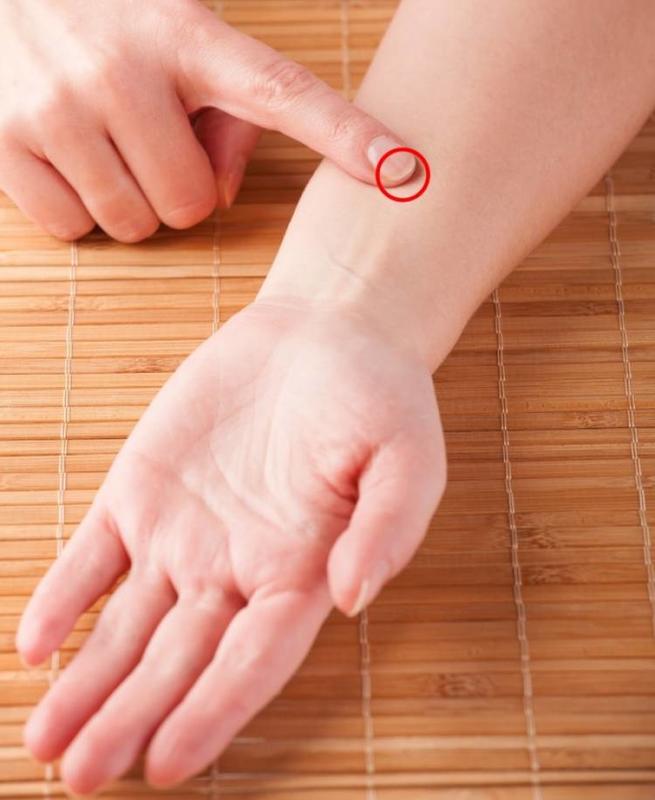 The pericardium point is located on the inside of your forearm and is at least 3 fingers away from your wrist. This point is between the two tendons. Applying firm pressure here can help provide relief from vomiting and nausea.