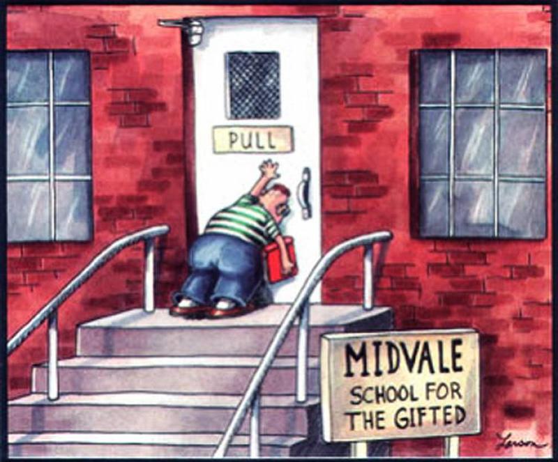 You were in a hurry this morning and you kept pushing the door so it would open, but it did not? Then when you look closely, you notice that the door says pull. Did anyone notice you making a fool out of yourself? If not, then you are extremely lucky.