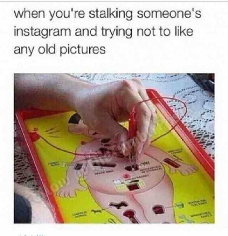Stalking someone on Instagram or Facebook is a hobby for some people. This job is for true professionals because you have to be careful about NOT liking some old post. Have you ever liked someone's 2-year-old Instagram post "by mistake?" How awkward would that make things?