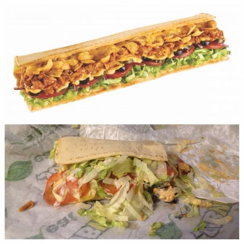 Food advertising has always been a tad misleading, and it's common for the actual product to be slightly different than the version shown on paper. Sometimes, though, they really screw you over when you're greeted by this joke of a meal. And then the business expects a nice Yelp review.