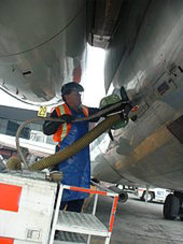 The previous picture's description mentioned something about the "airplane's belly." That's completely true, and that belly is just one of several tanks found inside the plane. These tanks get filled with waste, through the use of suction.
