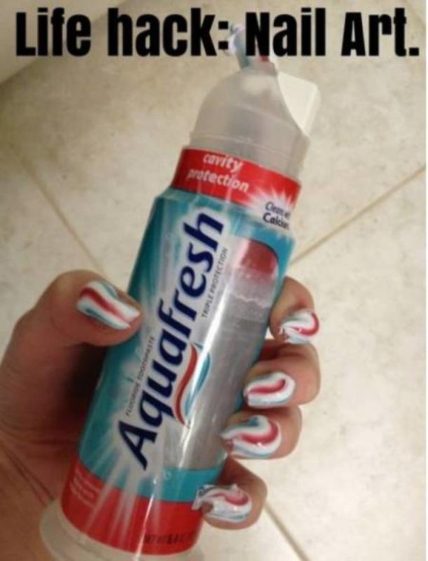 While the pretty stripes in an Aquafresh toothpaste bottle look a lot like a bit of art, or like a yummy candy cane. This does not mean that if applied to your nails you will have some nicely painted long lasting candy striped nail art. Stick to the salons and your manicures.