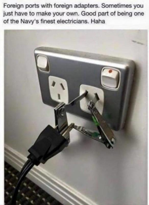 Electricity is not something to be messed with. Even the smallest amount of electrical current can really do some damage. This guy claims that this "life hack" can replace foreign adapters, but I think all it will do is send some shocking waves through anyone who gets near this death contraption.