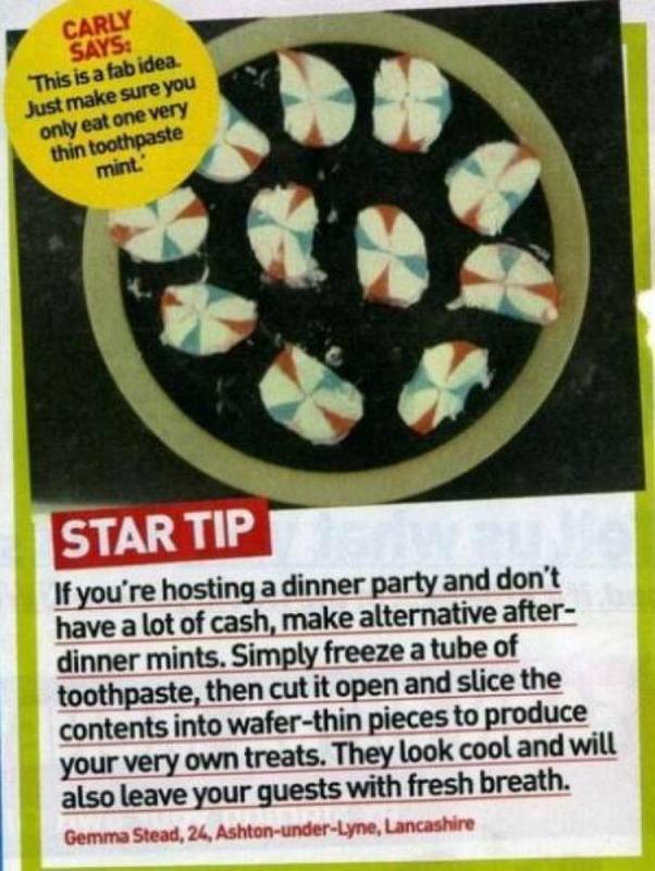 If you are too poor to afford to bring some after dinner mints to a dinner party, then you are too poor to attend a dinner party and should probably stay home and look for a job. Don't freeze toothpaste into makeshift mints, it's not healthy and it's not going to impress your guests.