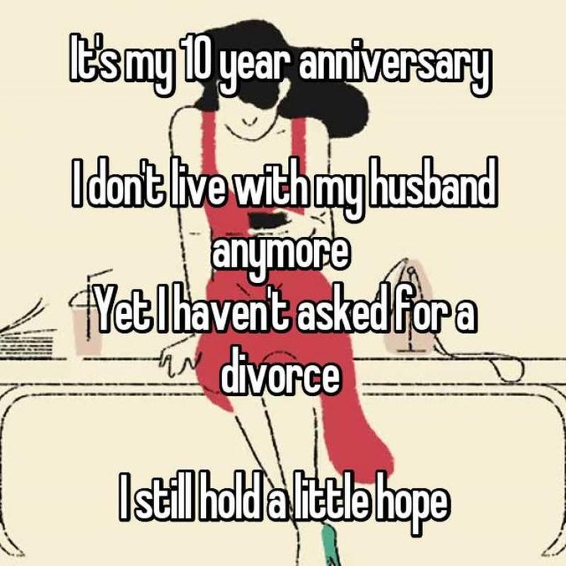 Their marriage hangs in the balance by a tiny little cord of hope. Hope that maybe their love will rekindle sometime. But it has been 10 years and counting to their separation, they haven't filed a divorce yet because of this hope