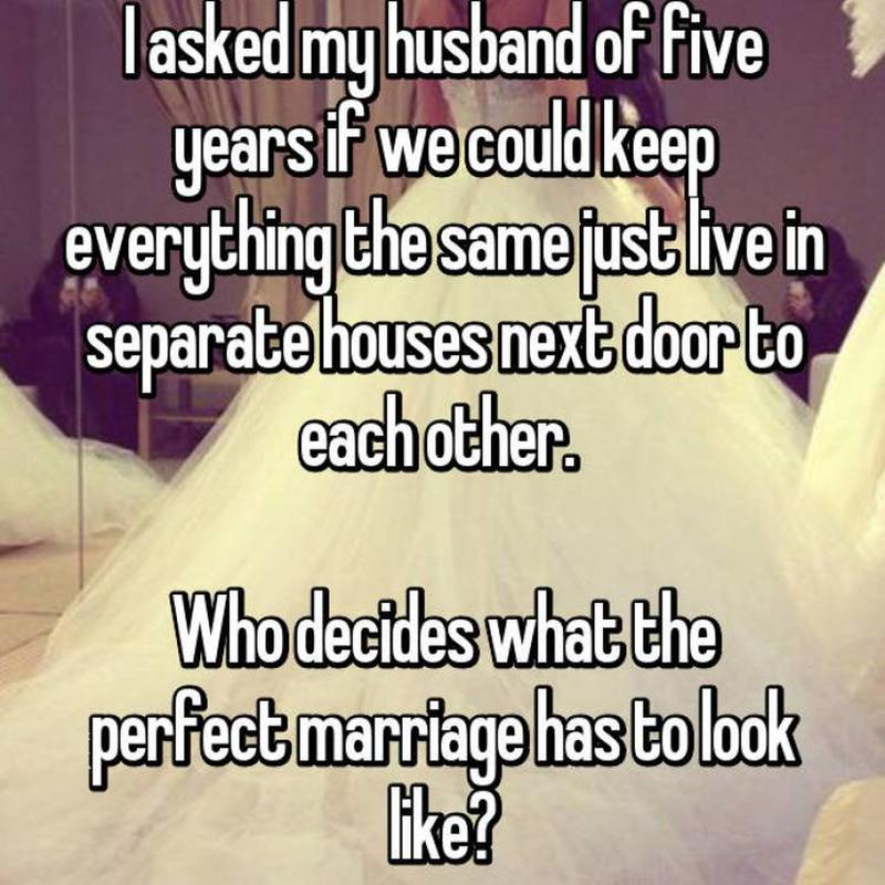 The entire point of getting married is to share the same roof together. But this husband and wife just don't want to live in the same house. It's not that they don't hate each other, they just don't leave each other either.