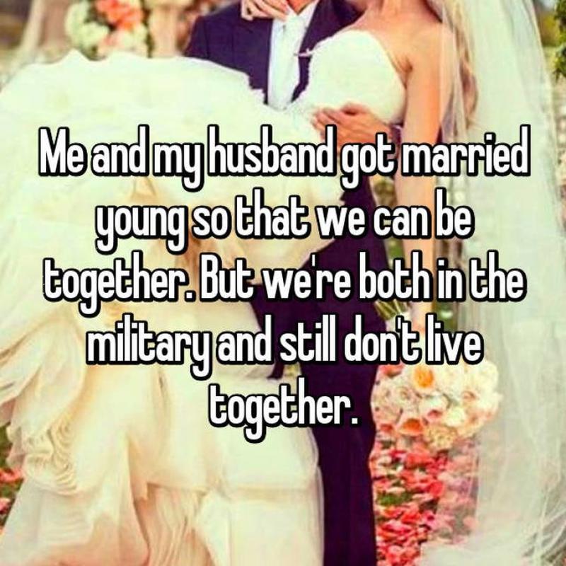 Because both husband and wife are in the military, they get posted at different locations frequently and seldom get to spend any time together. This actually makes up for a compelling reason why they're not together, unlike most lame excuses in this post.