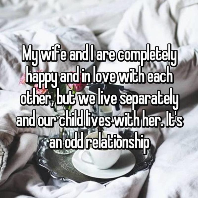 They call their marriage a successful one full of love and tranquility. There's just one complication, they don't live with each... is it because they're seeing someone else? We really can't tell. It's not a childless marriage either, the child lives with the mother.