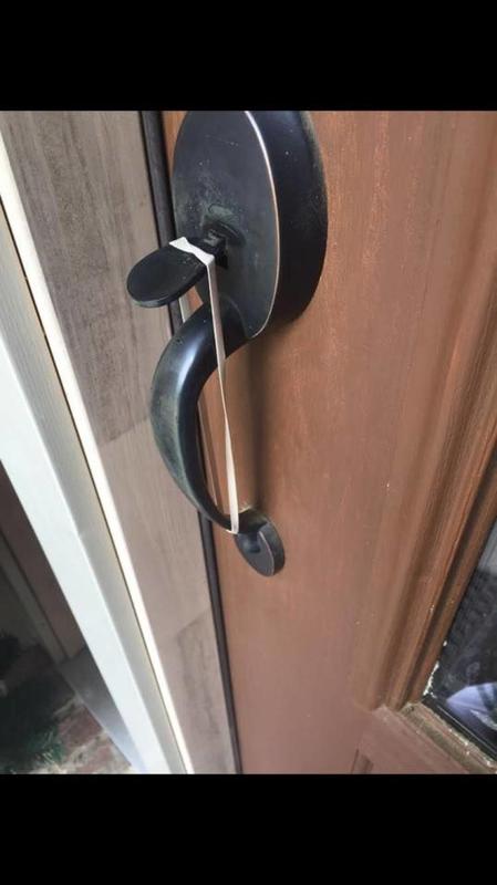 As the thief waits for an indeterminate amount of time for the resident to answer their call, the energy of the rubber inconspicuously holds the handle down. The owner is none the wiser and the thief can easily break in.
