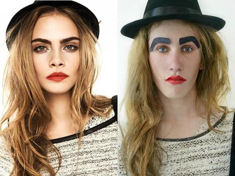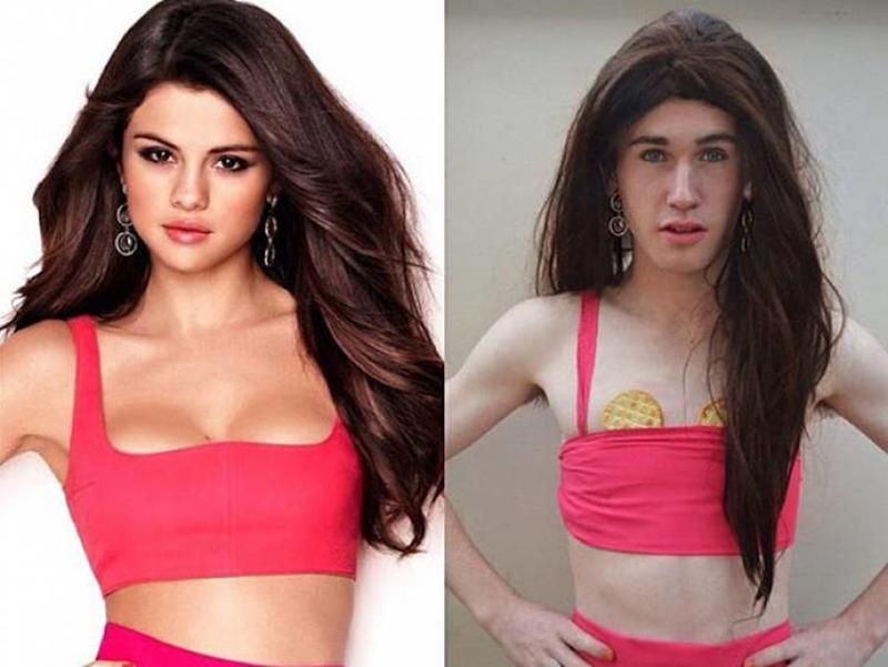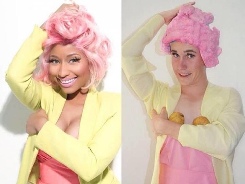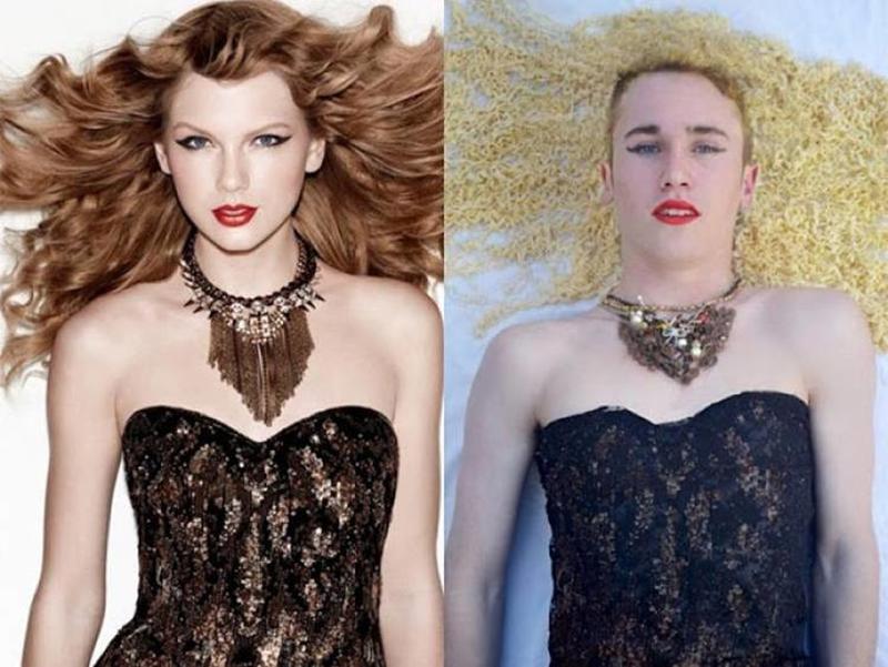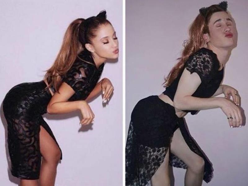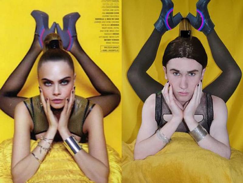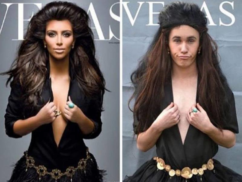 You know this boy has talent when he's able to perfectly imitate the style of the "Booty Queen", Kim Kardashian. You could say that Kanye wouldn't be too happy by these pictures but hey, it's all fun and games, isn't it?