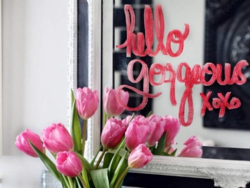 If you live with your boyfriend, or otherwise spend the night at his place, you can leave a sexy message on his mirror with your lipstick. Just do as the above picture shows - write in a large font, red color, and think of something sexy and unique.