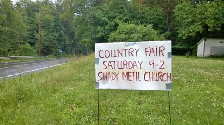On a beautiful Sunday morning, you want to do something to brighten your heart and soul and the be a part of the community. This sign seems like a promising way to spend a lovely little Sunday. At a county fair... doing meth. Doing shady meth. I'll pass thanks.