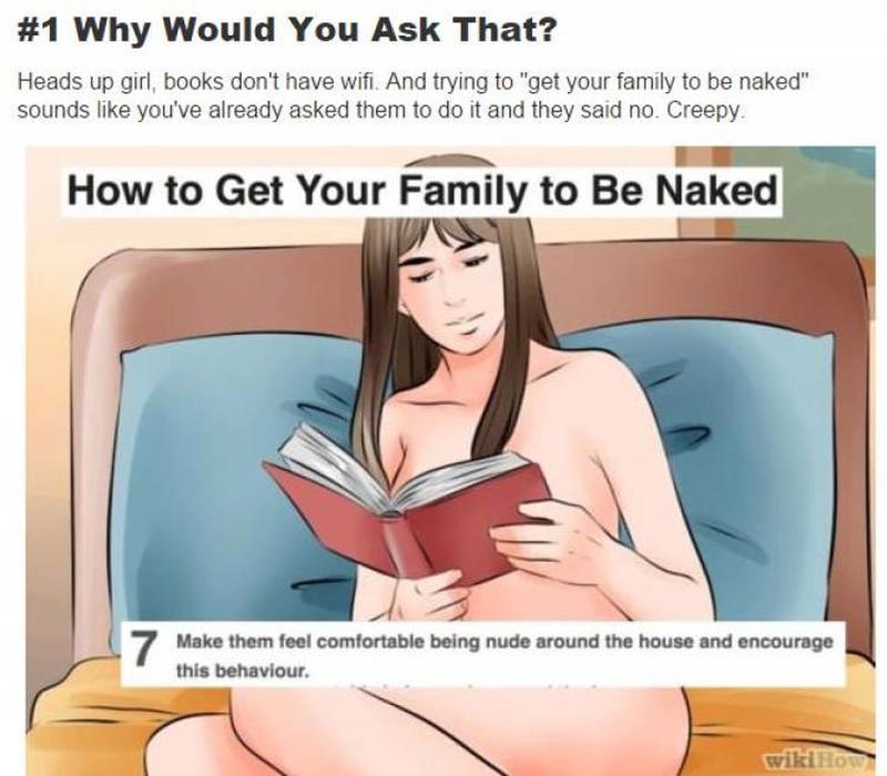 Here is a question that sounds really confusing. Why would anyone think of how to get their family naked, and even more, ask the question on a website? To put a nail in the coffin, WikiHow decided to entertain the question's asker, by giving a full page to the answer.
