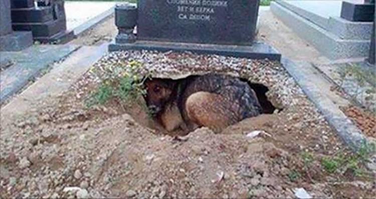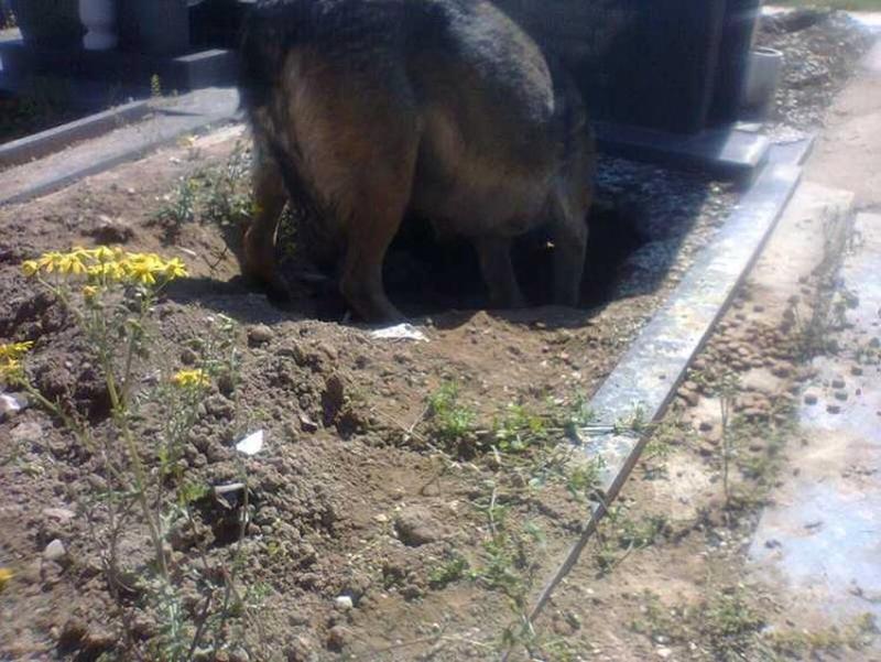 This photo began to get passed around the internet as sad picture of a dog who was grieving the death of it's owner. Many people felt that the dog was digging itself into the grave to be closer to his dead owner and the world felt the dogs heartbreak and sadness.