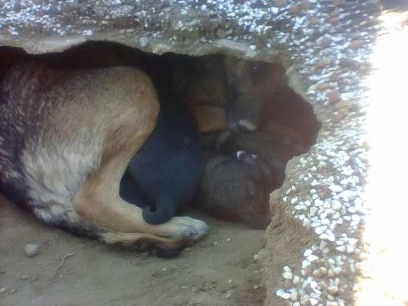 While the mother had done a really good job of protecting her young ones in the little grave home that she had created. The rescuers wanted to make sure that the pups were in good health, as well as the mama and gave them all necessary shots and checkups.