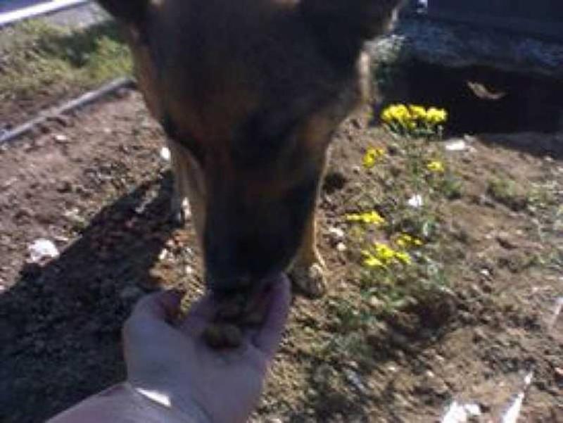 The dog in the graveyard had been pregnant and was using the grave as shelter to house her new puppies. At first the dog was hesitant for any assistance and was guarding the gave and her puppies with ferocity. But she eventually realized that assistance could be necessary.