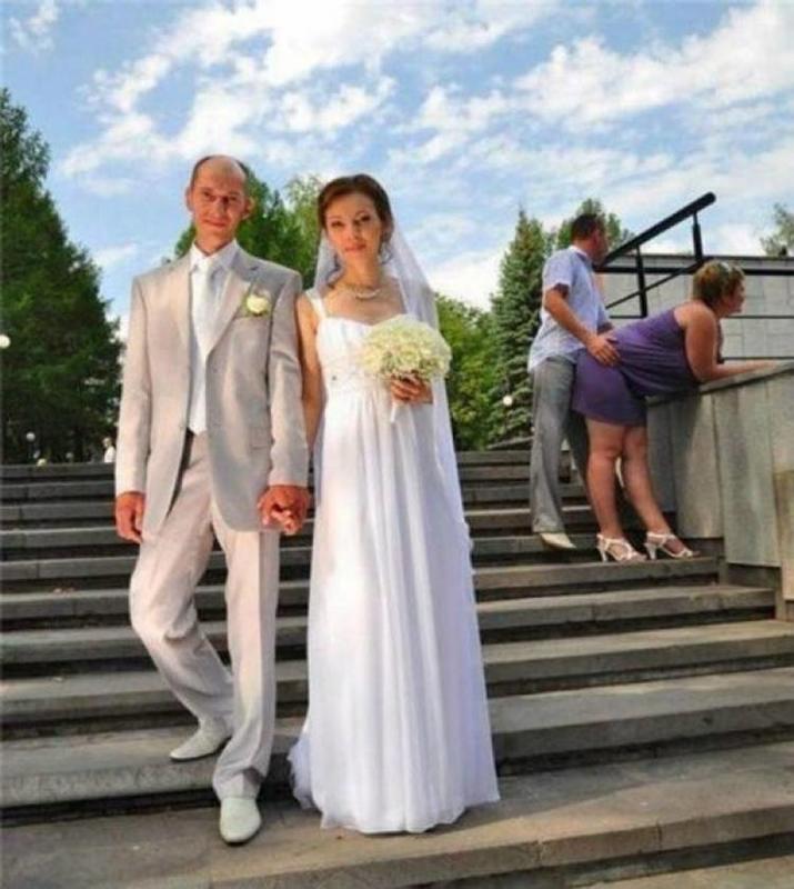 Usually, people get married so that they don't have to worry about their significant other's goods don't end up on display for the entire world to see. As you can see in this case, their wedding festivities resulted in the total opposite. Also, from the looks of the groom's eyes, he knew exactly what this cameraman was shooting.