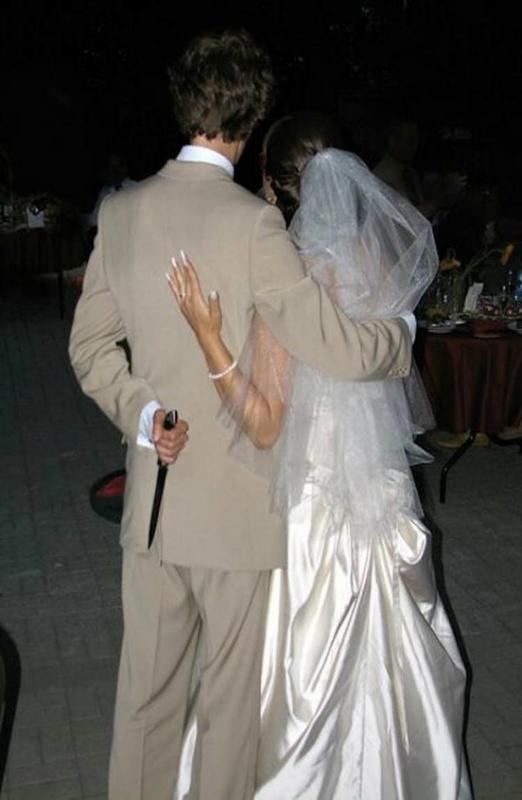 Hey, sociopaths need love too we guess... But whoever is responsible for snapping this flick should have taken action and warned someone instead of capturing this moment. At least, there's some sort of evidence that could be brought up in court if this bride ever goes missing. Regardless, this is extremely creepy and makes us uncomfortable.