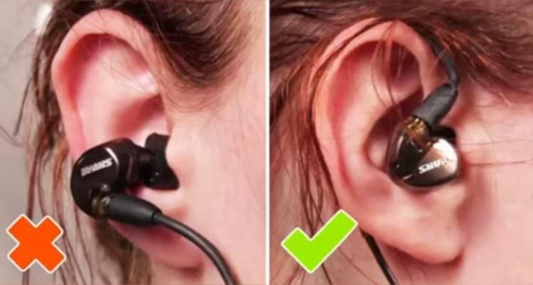 Eearbuds are compact solutions to the otherwise bulky headphones. Unfortunately most people don't really know how to plug them in, causing them to inadvertently fall out due to sight motion or gravity. The proper way is to loop the earbud over the top of your ear from behind.