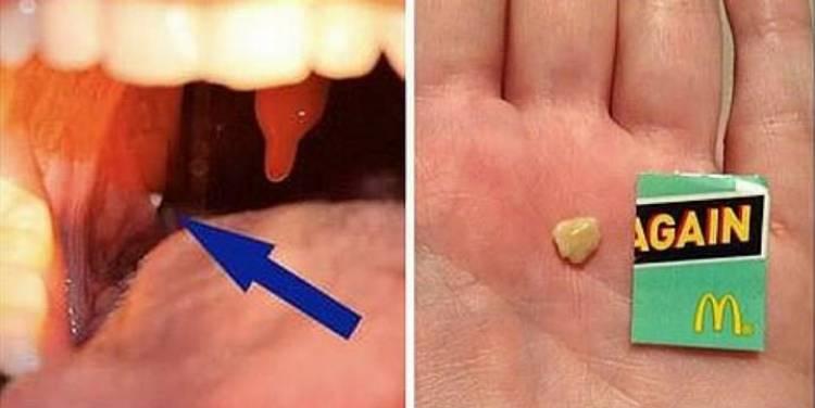 Although the tonsil stones depicted in these photos are easy to see, in many cases they can 'hide" on the other side of the tonsils. In that case, only a doctor can help you remove them. Ask your doctor to check your tonsil if you frequently suffer from bad breath.