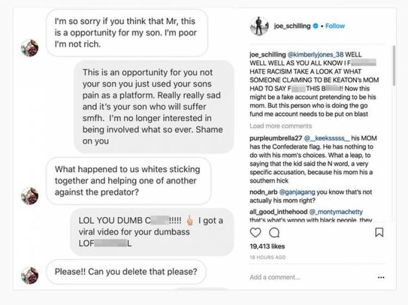 While the mother may have had racist views, this does not mean Joe Schilling should unleash provocative and rancid language online, after all if he wants to help the boy, this isn't how you do it. He later deleted the video and Instagram post.