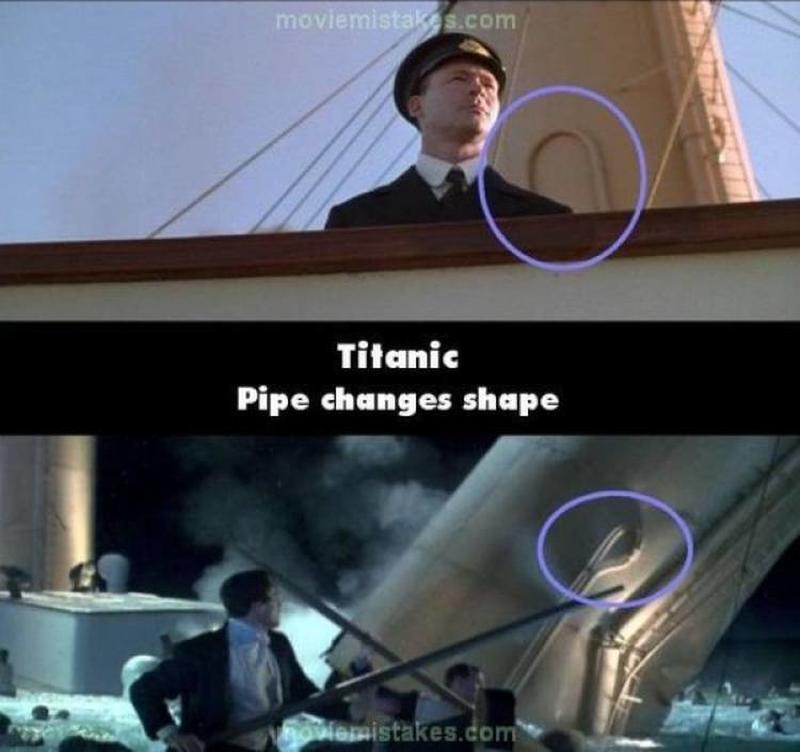 We don't know about you but, if we were on a large cruise ship and found out that some parts of the ship were made out of foam, we'd instantly call 911. Obviously, Titanic was just a movie but, they should have caught the wrinkles in the capstan in this scene and fixed it.
