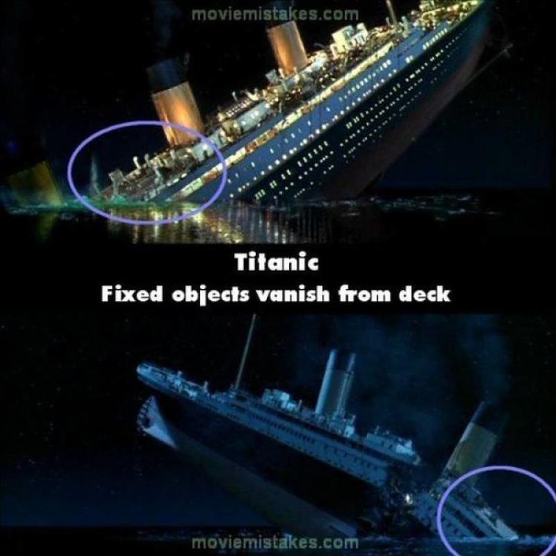 Maybe the prop crew hired for this film think people wouldn't notice the major changes in the ship's manufacturing but, little did they know that people live to find mistakes in major motion pictures. You'd think there would be more attention to detail on the ship itself being that the movie is about, you know... the ship sinking and all.