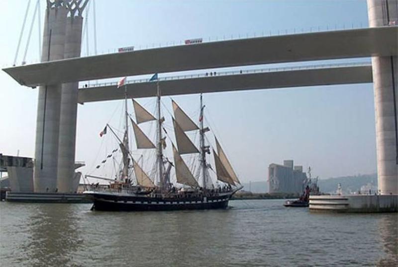 This bridge has a pretty smart mechanism when a tall ship needs to pass underneath it. Instead of separating down the middle like regular bridges do, this bridge lifts up its entire midsection, so that ships can pass underneath it at any point.
