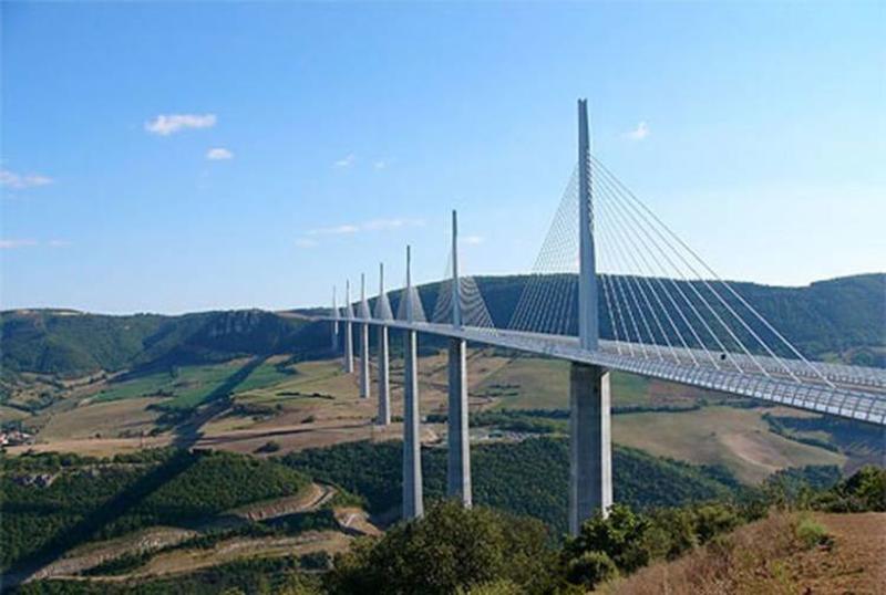 The Millau Viaduct is one of the tallest bridges in the world. It is exactly 1125 feet tall, which is tall even for a building. Not only is this thing tall, but it also covers a great distance - just look how far the other end of the bridge goes - it is almost hard to see with a naked eye.