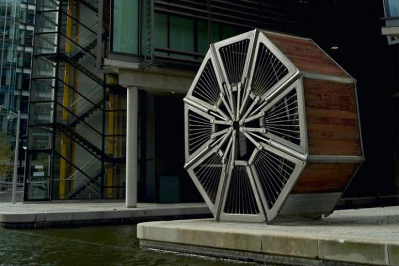 Here is a photo of a crazy bridge that could only be built in the UK - the "Rolling Bridge." When a person needs to use the bridge, it rolls over the Grand Union Canal. Once done, the bridge roles back and makes the path clear for boats to pass through.