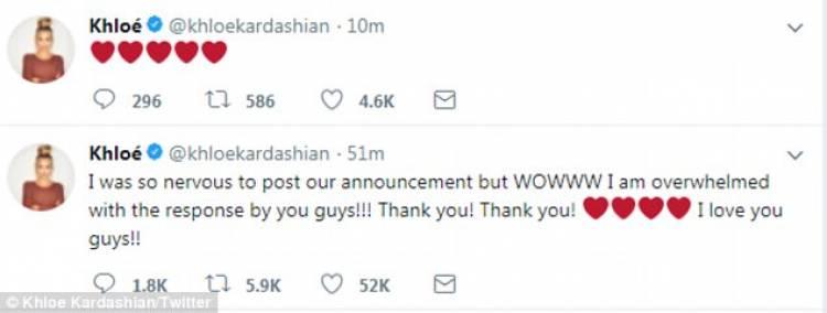 After Khloe uploaded the first photo showing her baby bump, the post received over one million likes on Instagram in just 15 minutes. That must have been a record. The post continued racking up the like and got to 4.5 million after 3 hours.