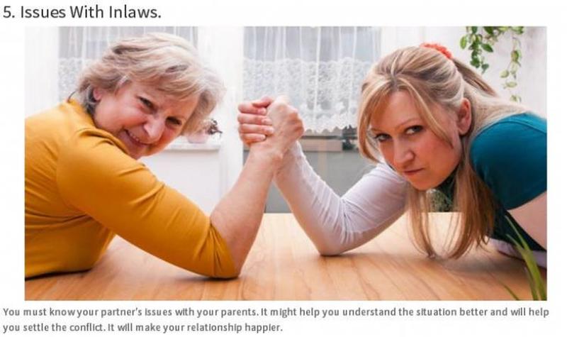 Another common problem some people have is in dealing with the in-laws. While this doesn't have to be a deal breaker for you, you do need to know about any potential future problems and to decide whether you accept being in that kind of a relationship.