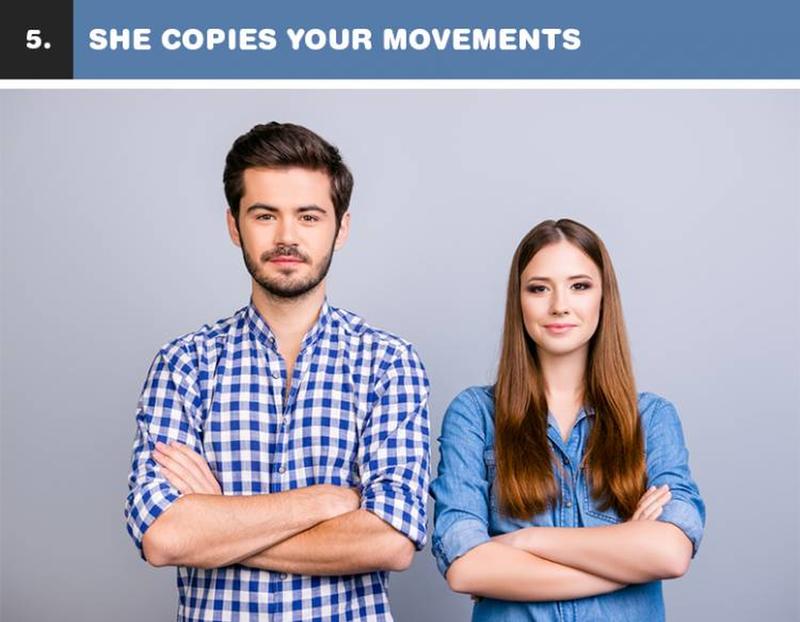 You might have noticed this behavioral pattern with little girls who try to mirror all the people that they see. This is a built-in instinct that all people have, including men and women. If you notice that a girl is imitating your moves, don't be weirded out - that just means she likes you.