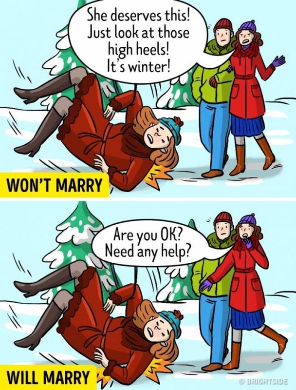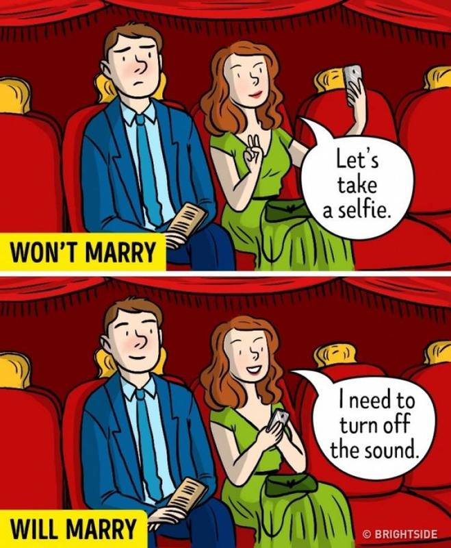 When the time to start a serious relationship is near, most guys will start to value a girl's intelligence more than her looks. The above photo explains that phenomenon - while immature girls just think about taking selfies, a more mature woman would turn off the sound when she is in the theater.