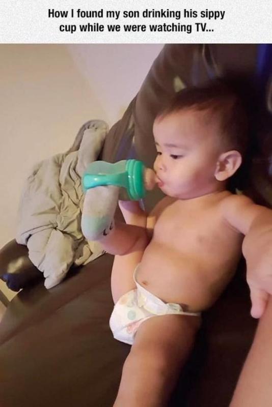 Kids have the ability of letting you know where they're headed in life pretty early on and from the looks of this little guy and his style of staying hydrated, we got a baby genius on our hands. He's definitely going places without a doubt in our mind.