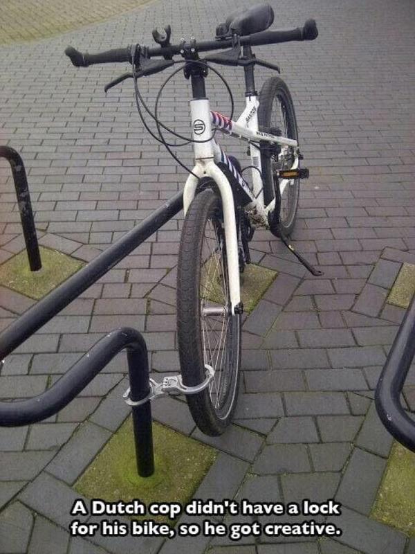 This is a pretty genius idea if you ask us but, we're pretty positive that it's against the rules for law enforcement to use their handcuffs for things like locking up your bike being that they're city property but, this is definitely effective.