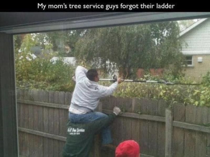 Landscaping is such a slept on occupation, as not only does it take some sort of sense of creativity as well as some much-needed elbow grease to get the job done so, when these dudes forgot to be a ladder on the job site, they improvised and made things work. Teamwork makes the dream work.